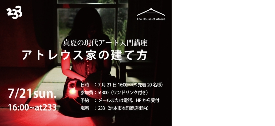 よくわからないものの代名詞「アート」について、とっても分かりやく易く楽しい講座を開講します。応用編では長島確氏によるアトレウス家の建て方について。その後の卓球大会交流会にも是非!