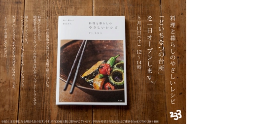 料理と暮らしのやさしいレシピ “どいちなつの台所” を一日オープンします。